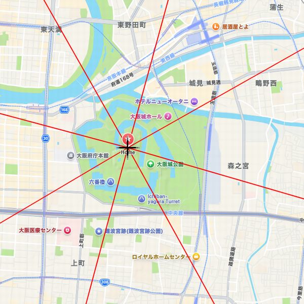 (3)中心を、例えば自宅が大阪なら大阪にもっていきます。(画像2)